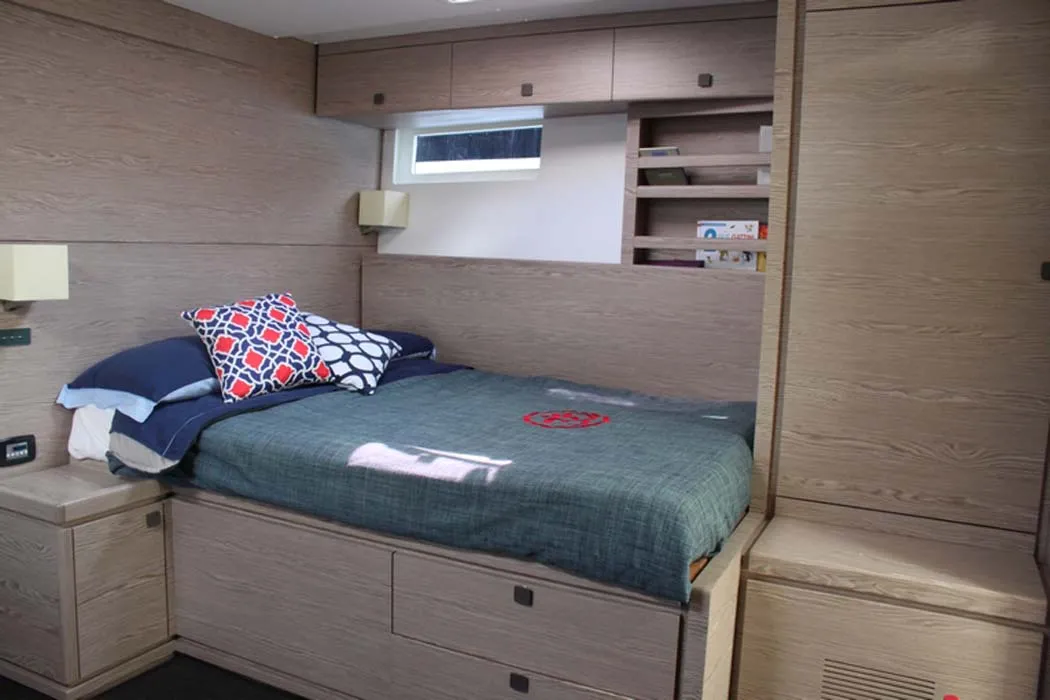 Progettato per offrire una vera semplicità di manovra, questo yacht vi porterà a velocità sostenuta verso un nuovo mondo. Realizzato interamente in fibra di carbonio, come nella migliore tradizione della famiglia Vismara. Lo studio della coperta è focalizzato a garantire la massima fruibilità di bordo all’armatore ed ai suoi ospiti in qualsiasi andatura ed in qualsiasi stagione.
