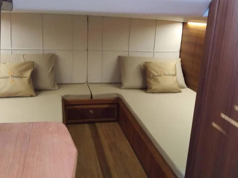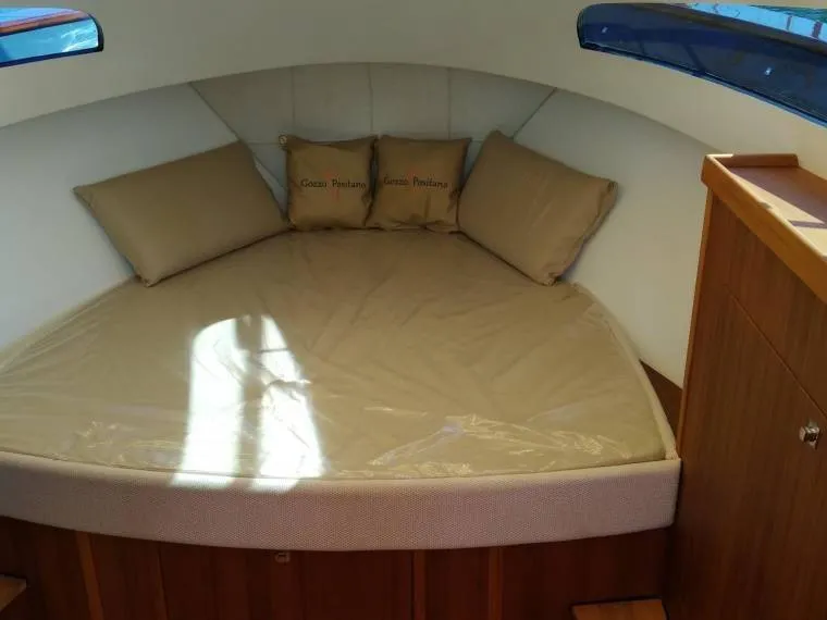 Questa imbarcazione accoglie fino a 12 ospiti più un membro dell’ equipaggio ed è attrezzata con tutti i comfort necessari a farti trascorrere una giornata speciale in mare. Goditi il sole sugli enormi prendisole di prua e poppa o rilassati sul divanetti centrali e vivi un’esperienza da sogno!