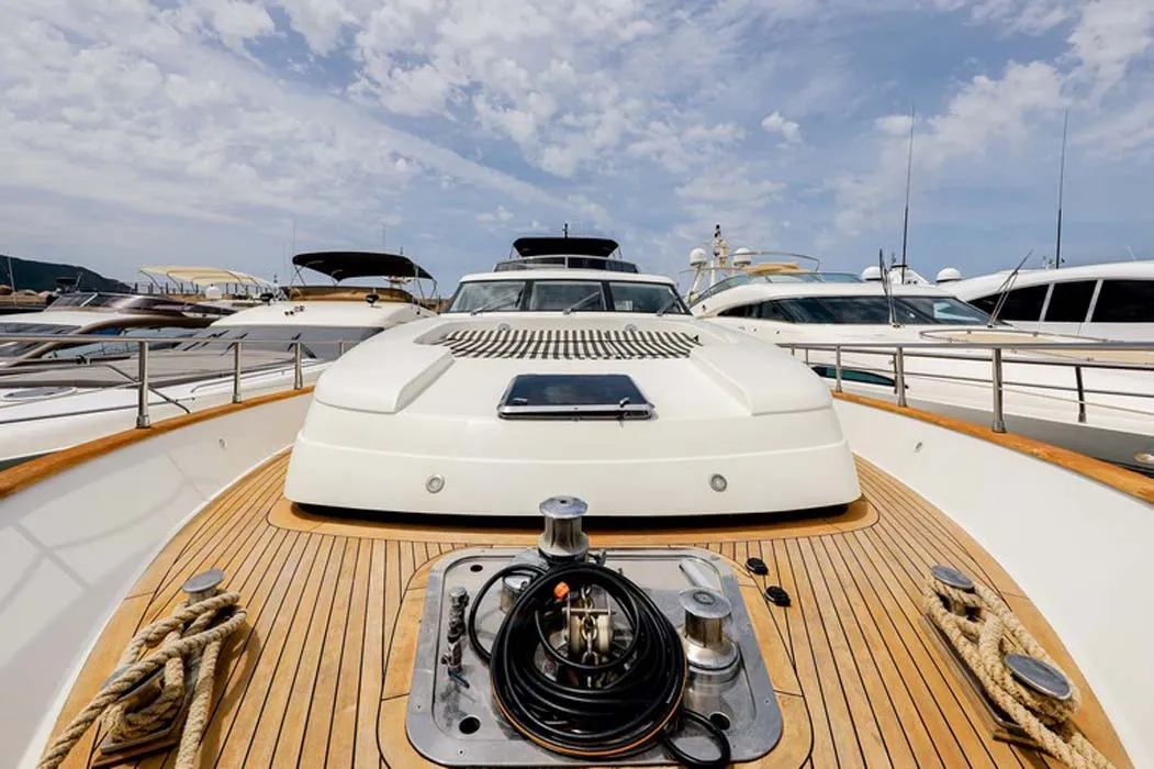 - Vhf, Autopilota, Generatore, Cuscineria, Stabilizzatore, Aria condizionata, Gps, Fuoribordo, Dissalatore, Passerella Idraulica, Frigorifero